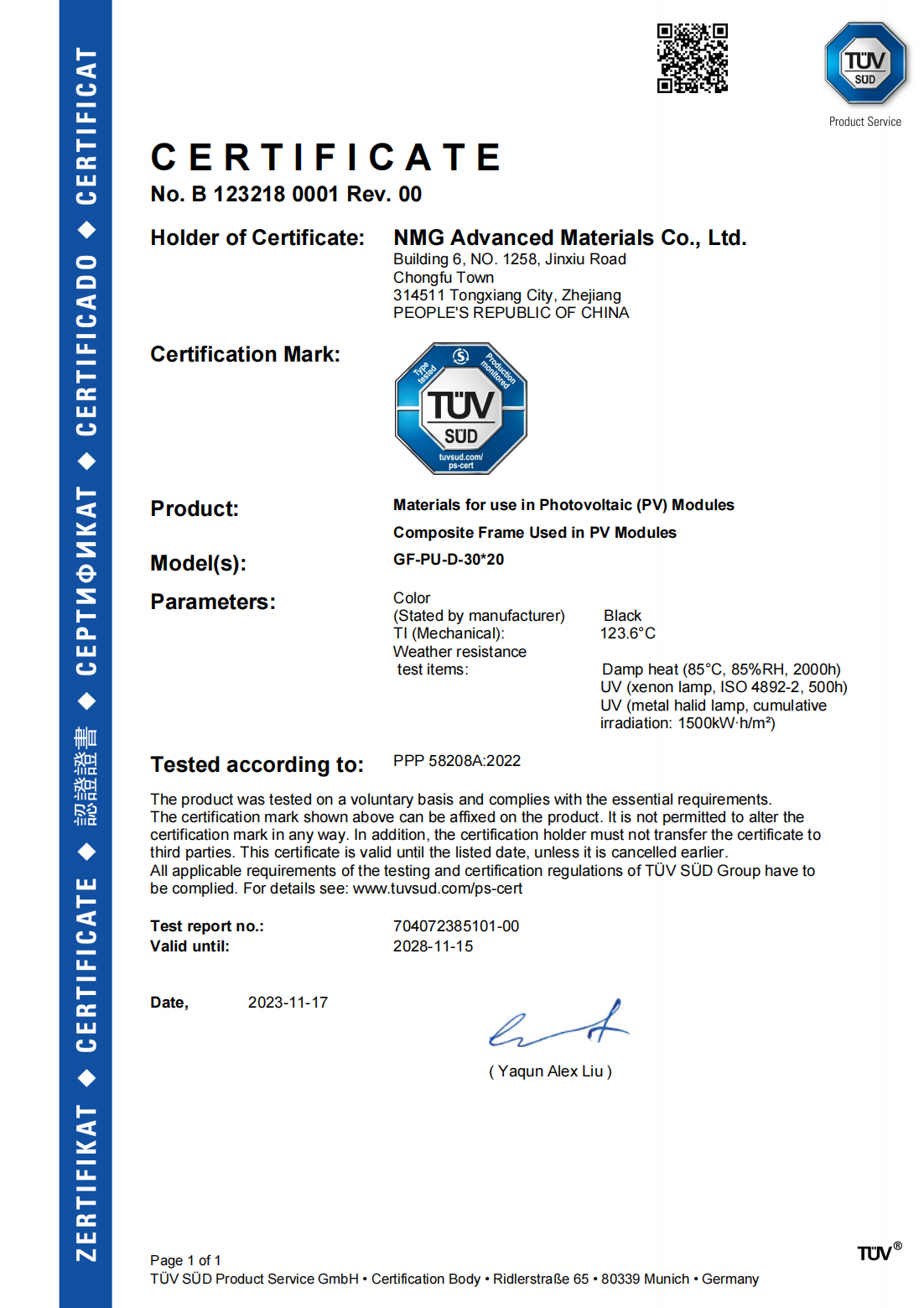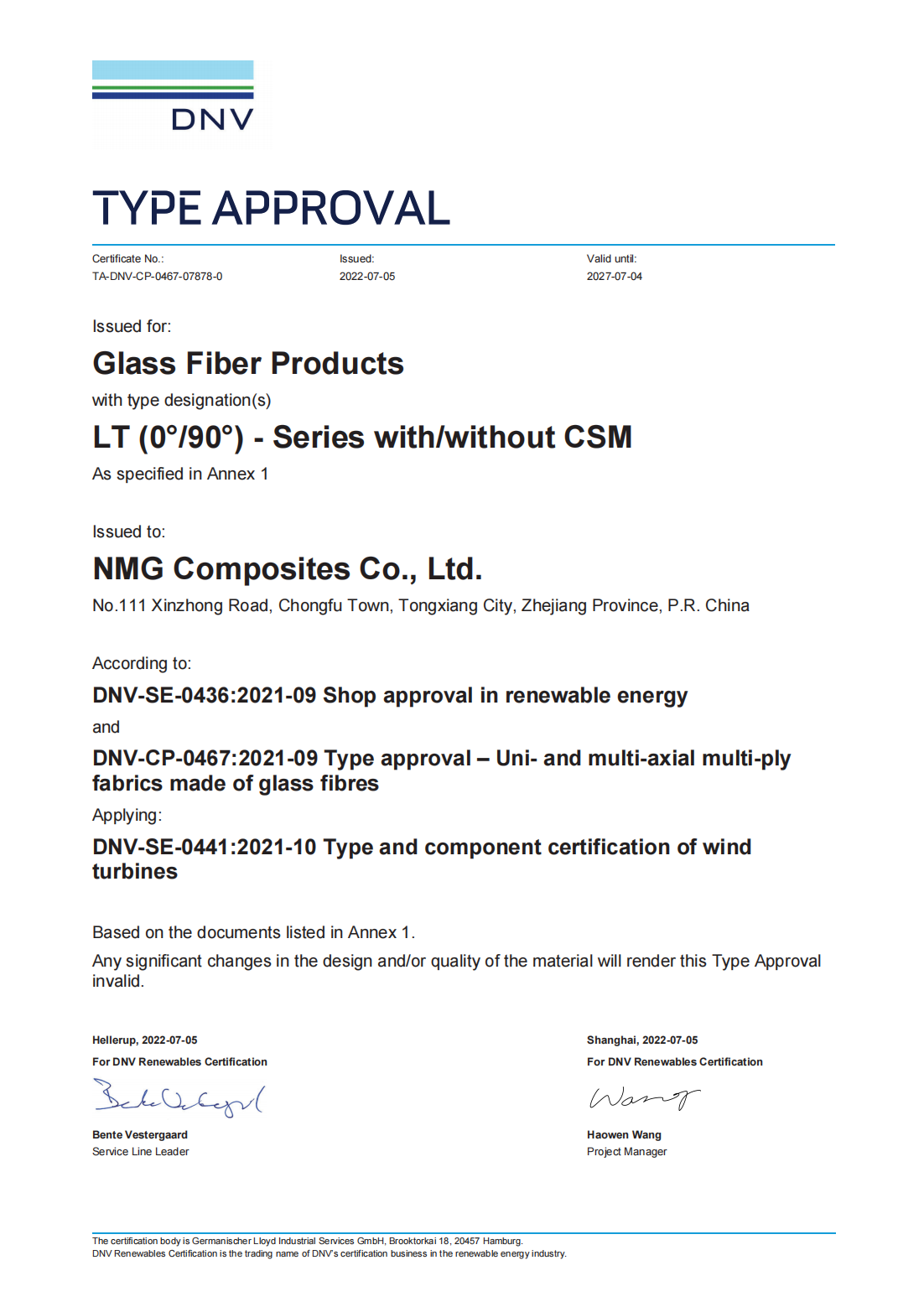 歐洲公司內(nèi)部檢測實(shí)驗(yàn)室于2018年獲得國際知名認(rèn)證公司(DNV船級社)認(rèn)可實(shí)驗(yàn)室資質(zhì)。